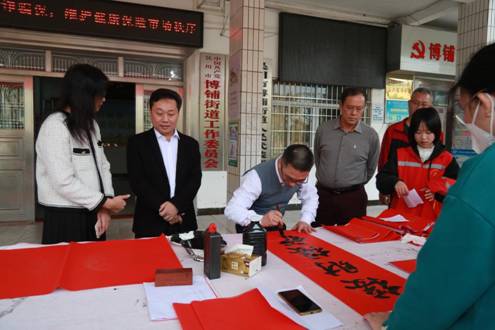 金兔辞旧岁,玉龙迎新春。新春佳节将至,为弘扬中华传统文化,密切人大代表和人民群众的联系,营造欢乐祥和的文化气氛和节日氛围,近日,博铺街道人大开展了人大代表送春联活动,市人大代表、街道党工委副书记、办事处主任沈志雄,街道人大工委主任李鹏程等参加了活动。
