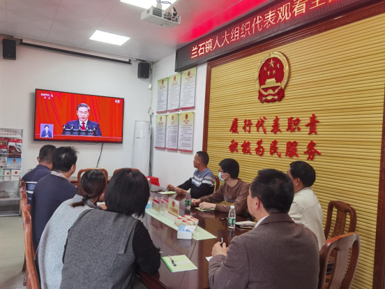 聚焦全国两会,关注国家大事。3月5日上午,十四届全国人大二次会议在北京人民大会堂隆重开幕。兰石镇人大组织部分市、镇人大代表进中心联络站集中观看了全国两会直播盛况,学习领会会议精神,汲取工作奋进力量。