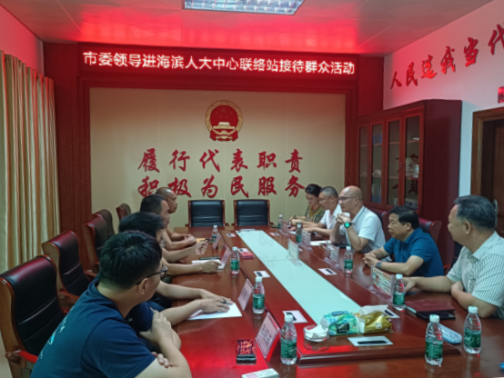 为更好发挥人大代表作用,履行人大代表职责,切实为群众解难题、办实事。7月30日,市委常委、政法委书记陈丹踪以人大代表身份进海滨街道人大代表中心联络站开展接待群众活动,海滨街道党工委书记易凌云,街道党工委副书记、办事处主任林智,街道人大主席陈亚超及相关职能部门陪同参加活动。