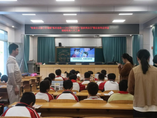 为了增强学生法治意识,帮助其树立正确的价值观和行为准则,营造良好的校园法治氛围,12月4日,塘尾街道人大工委组织部分市人大代表到高屋小学开展“国家宪法日”普法宣传进校园活动。