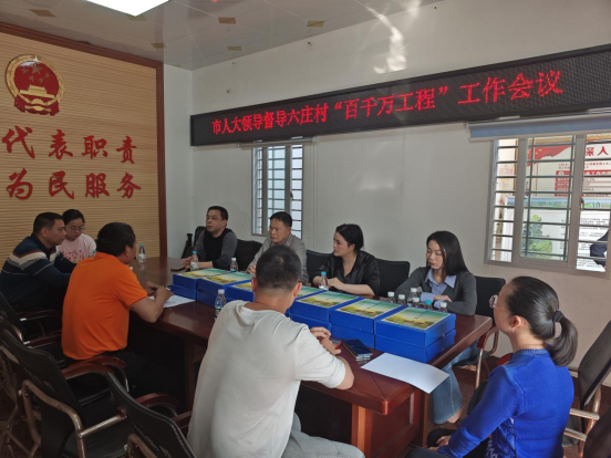 在六庄村委会,林盛文对村干部亲力亲为的工作态度予以高度表扬,村干部们扎根一线,积极投身到乡村建设的各项事务中,以实际行动诠释着责任与担当,成为乡村发展的坚实力量,激励他们要以典型村的高标准严格要求自己,全方位落实“百千万工程”各项任务。