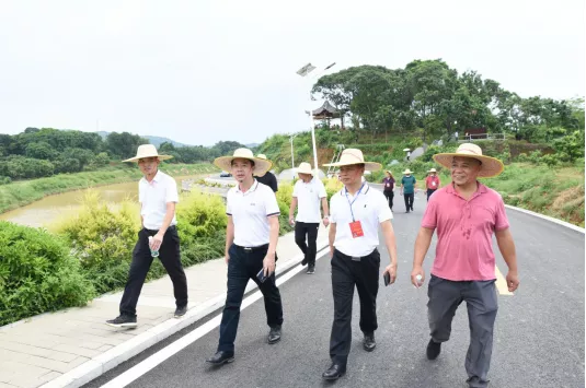 代表们一行先来到了分界镇的杏花村,在当地镇农业办负责人的带领下,察看了杏花村的人居环境整治和乡村振兴情况。据了解,曾经的杏花村危旧瓦房多、杂草丛生、设施落后。如今取而代之的是一栋栋风貌统一的岭南特色楼房,村内设施完善、环境优美、景点众多、游人如织、产业兴旺。杏花村依托原有的山水地貌,改善优化农村人居环境,在建设中充分体现生态特色、人文特色、资源特色,实现了本土民俗、生态文明、特色产业的统一协调发展。连片打造了十几处景点景观,沿线发展龙眼、鳄鱼、旅游三大特色产业,民宿、餐饮、电商等新业态逐渐显现,村民走上了产业致富路。