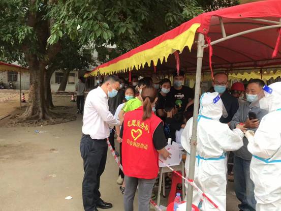 疫情就是命令,防控就是责任。海滨街道人大工委接到市人大常委会向全市各级人大代表发出《同心同德同抗疫 群策群力群作为——致全市各级人大代表的一封信》后,第一时间组织驻站人大代表到街道的选区报到,主动下沉到核酸检测点等岗位,成为辖区一名抗疫先锋队的队员,奋战在基层战“疫”一线。