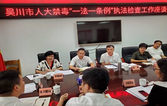 7月20日下午,为做好《中华人民共和国禁毒法》《广东省禁毒条例》(以下简称“一法一条例”)执法检查工作,根据市人大常委会2022年度监督工作计划安排,市人大常委会党组书记、主任陈勇,市人大常委会党组成员、副主任李伟文,率市人大常委会“一法一条例”执法检查组在市人大机关会议室召开市人大禁毒执法检查工作座谈会,市教育局、市财政局、市司法局、市市场监督管理局、市文化广电旅游体育局、市卫生健康局等部分禁毒成员单位负责同志汇报了近三年来贯彻执行“一法一条例”情况。