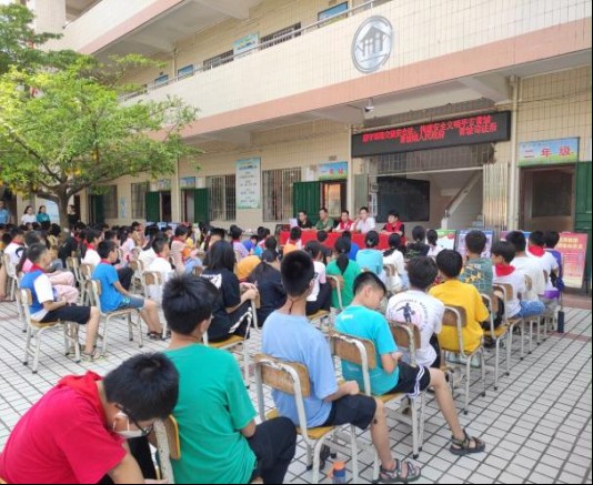 其次,镇团委书记黄东杰对道路交通安全知识进行宣讲,用通俗易懂的语言向学生们普及了《湛江电动自行车管理条例》法规,针对农村地区学生及其家长交通意识淡薄的特点,通过抓住少年儿童好奇心的方法与小朋友们进行现场互动问答,向学生和家长宣传骑乘摩托车、电动车不戴头盔、驾驶无牌无证机动车的危害性,教育引导了学生和家长树立安全文明出行理念,促使他们紧绷交通安全这条弦,自觉抵制交通陋习,进一步加强校园师生交通安全教育工作,提高师生的交通安全素养和自我保护能力,增强家长的文明交通意识,筑牢青少年安全自护防线。