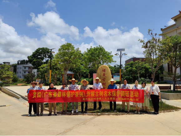 7月10日,为贯彻《广东省森林保护条例》,王村港镇人大组织新梅村人大代表小组开展古树名木保护调研活动,助推绿美广东生态建设,共同守护绿色“活文物”。
